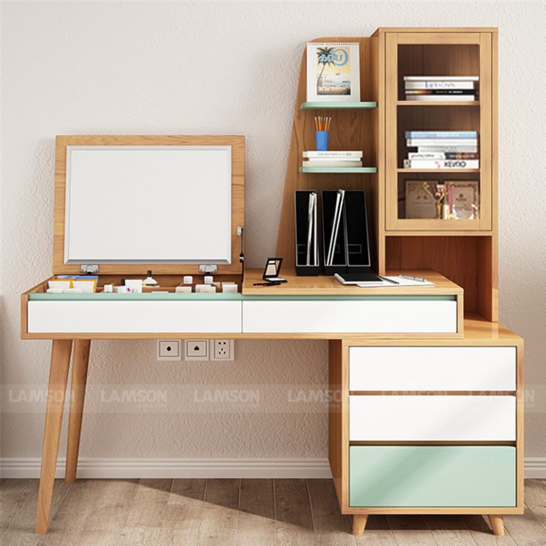 Khiến mọi vị khách ấn tượng từ cái nhìn đầu tiên, bàn làm việc Đa năng chính là sản phẩm mà bạn có thể đặt mua ngay tại các cửa hàng của Lam Sơn. Bạn có thể thay đổi màu sắc hoặc điều chỉnh về kích thước để có được mẫu bàn làm việc đẹp nhất, ưng ý nhất của riêng mình. Bàn làm việc Đa năng với thiết kế chồng chéo nhiều ứng dụng vừa bàn làm việc vừa kết hợp cùng bàn trang điểm và tủ sách tiện lợi cho việc lưu trữ sách vở và đồ dùng cá nhân, kết hợp cùng 3 hộc kéo dưới của tủ sách và 2 ngăn kéo dưới bàn cho bạn không gian chứa đựng đồ dùng để làm việc tiện lợi.
